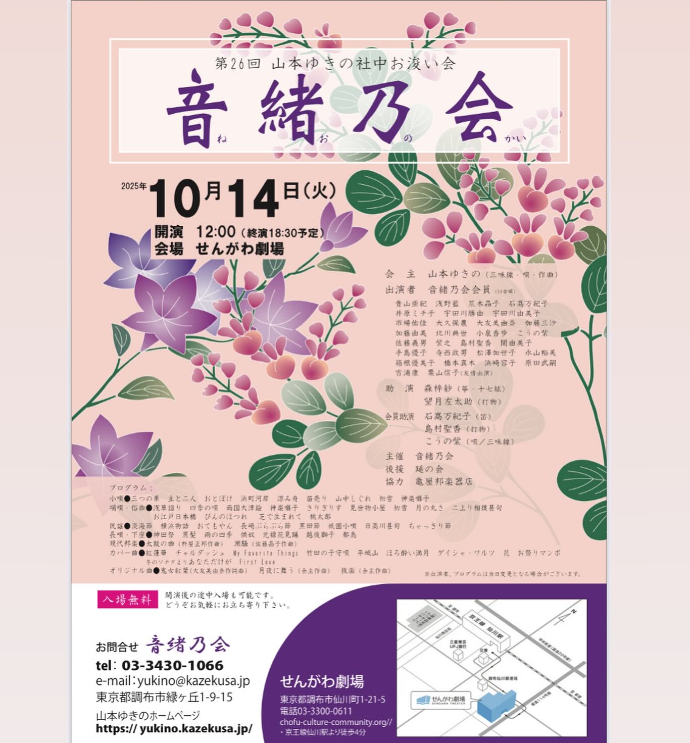 ねのいろ代表である山本ゆきのの社中会。ねのいろメンバーも全員出演します。