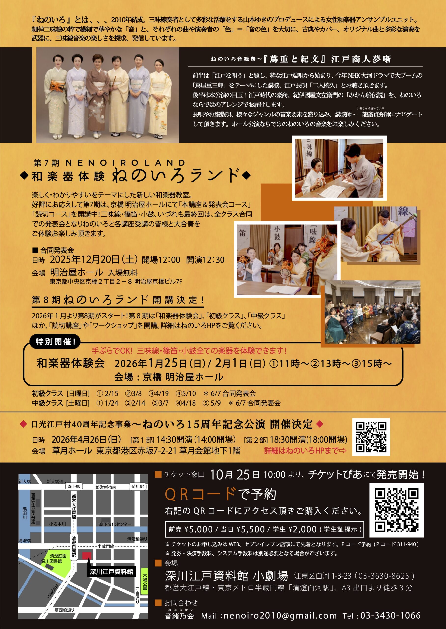 12月11日 ねのいろ音絵巻「蔦重と紀文」江戸商人夢噺