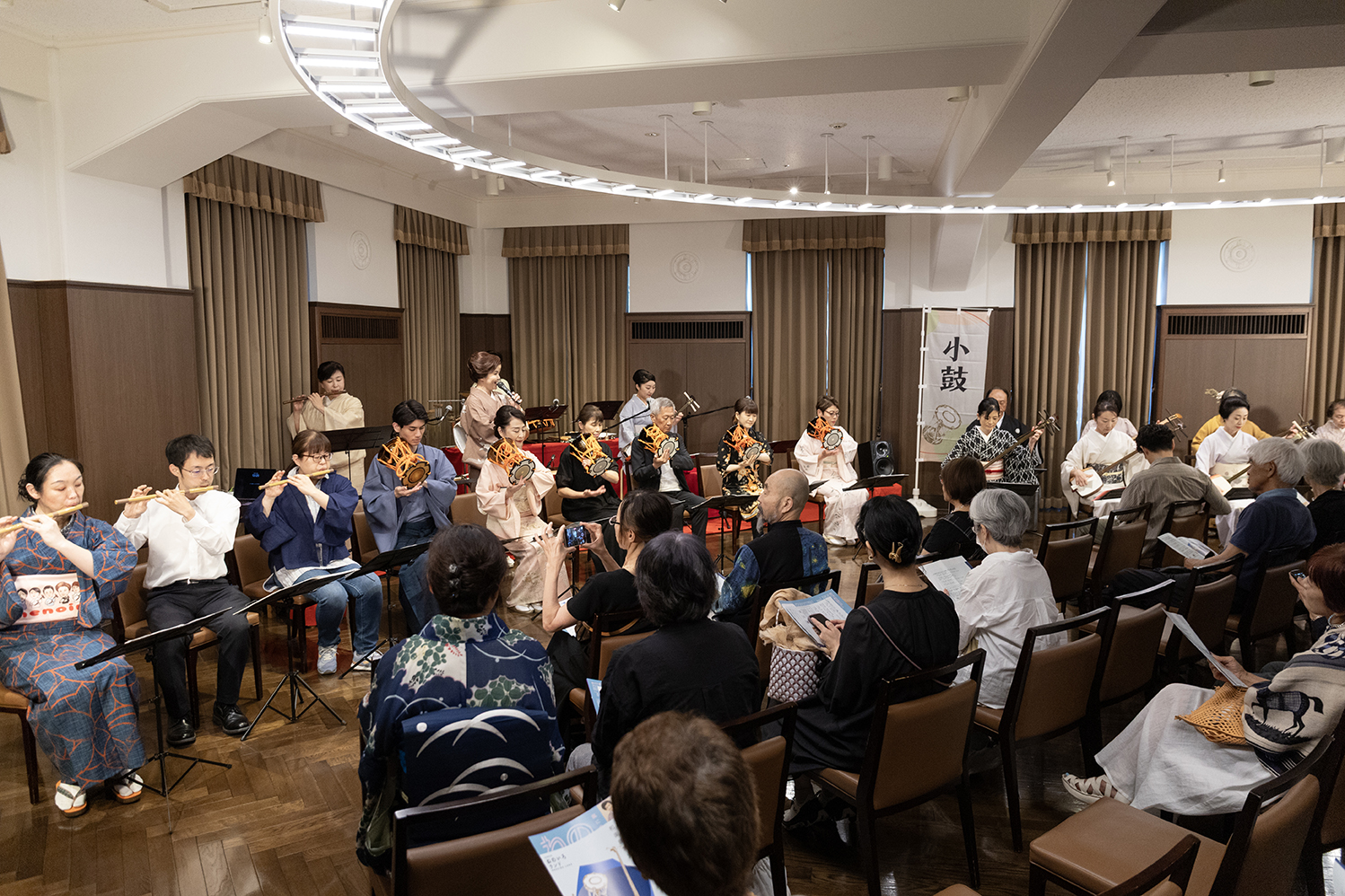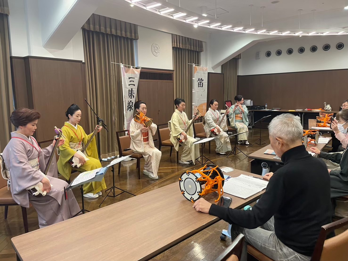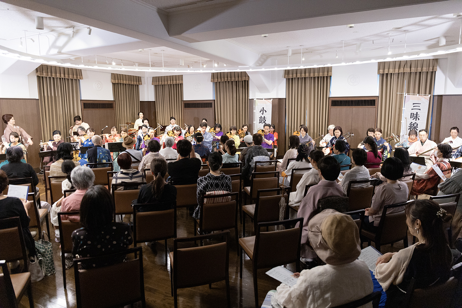 - 発表会は、三味線、小鼓、笛クラスの合奏曲演奏も。