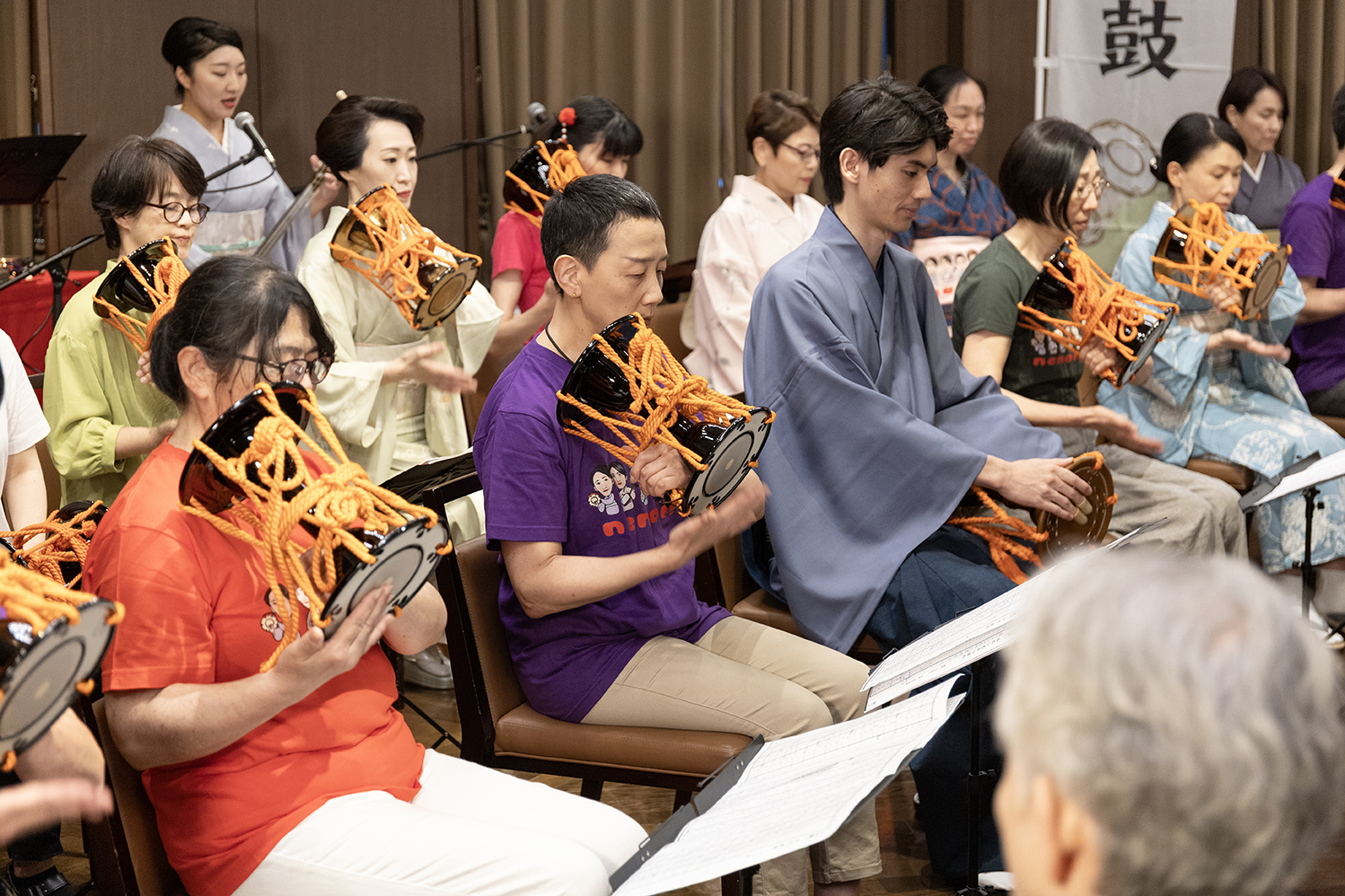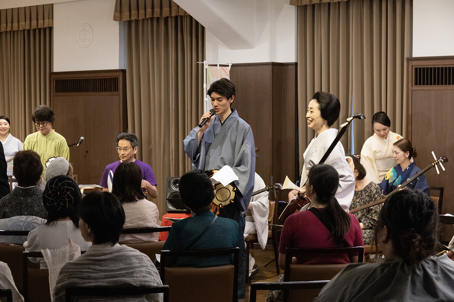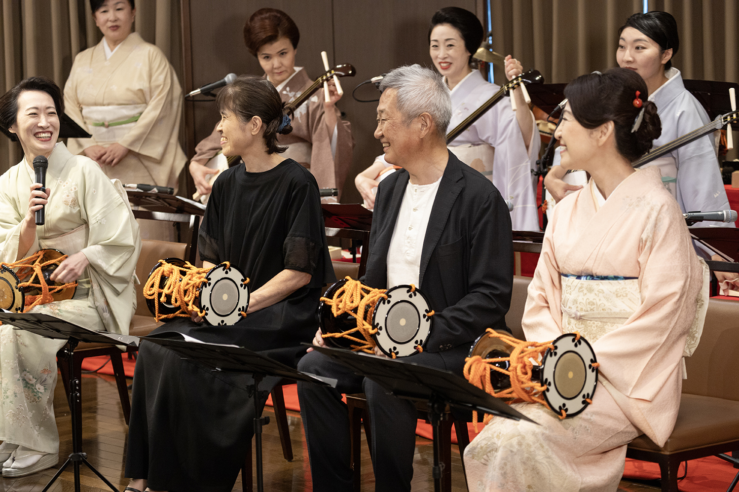 - 発表会は、三味線、小鼓、笛クラスの合奏曲演奏も。