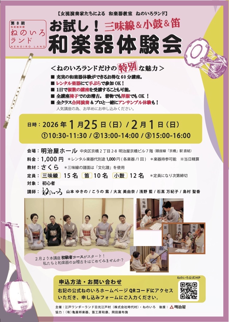 特別な魅力が満載!和楽器体験 <ねのいろランド>